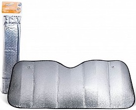 Двусторонняя солнцезащитная шторка размером необходима для блокировки попадания солнечных лучей со стороны лобового стекла в салон машины. Серебристая поверхность шторки отражает солнечные лучи, защищая салон и торпеду автомобиля от нагрева. Крепится к лобовому стеклу с помощью двух присосок. Высота шторки 70 см - идеальна для средне размерных автомобилей.