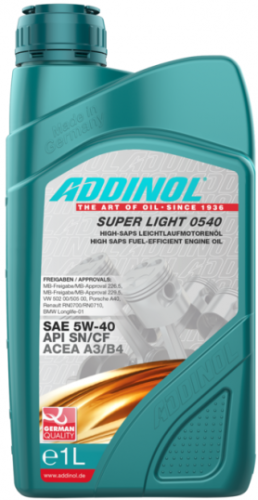 ADDINOL Super Light 0540 — это топливосберегающее моторное масло легкого хода класса SAE 5W-40.